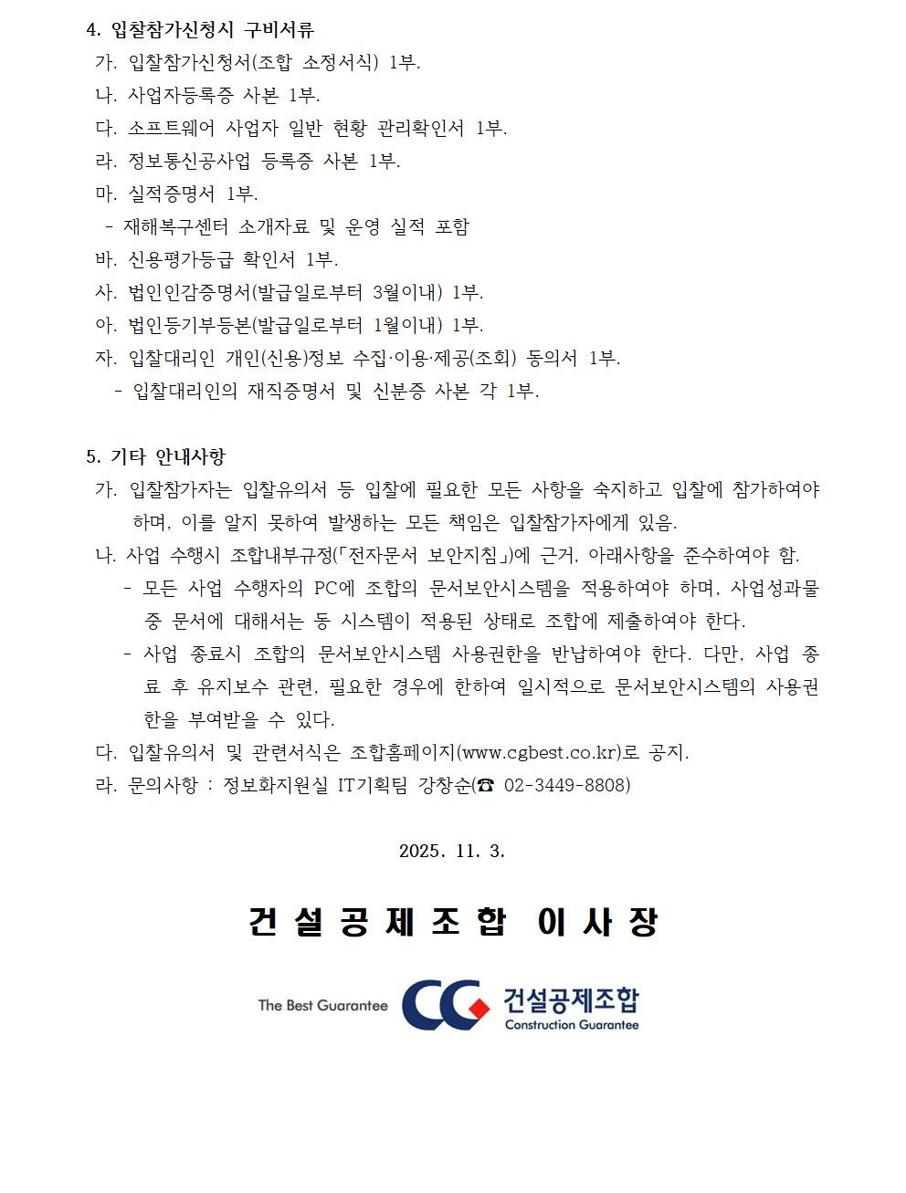 건설공제조합 통합건물관리 용역사업자 선정